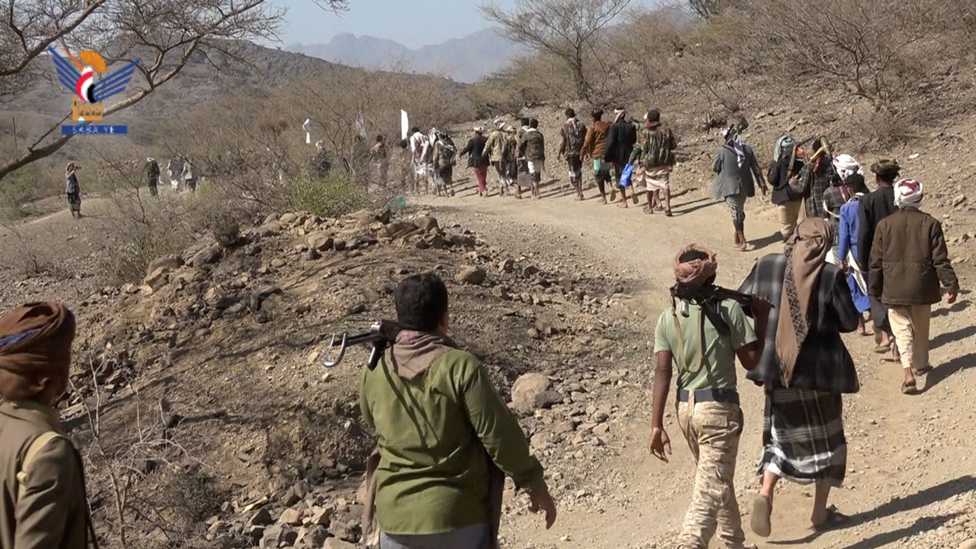 أُقيم اليوم في مديرية حزم العدين بمحافظة إب مسير ومناورة تطبيقية حاشدة لخريجي دورات "طوفان الأقصى" من أبناء عزل المربع الغربي بالمديرية.