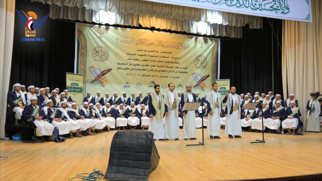 احتفت مراكز المعرفة العلمية اليوم بصنعاء بتخرج الدفعتين الأولى والثانية من منتسبيها دفعتي "الإمام مجدالدين المؤيدي" والشهيد السماوي" وكوكبة من الأوائل والمجازين في القرآن الكريم بروايتي حفص ونافع، في إطار الذكرى السنوية للشهيد الرئيس صالح الصماد تحت شعار" يد تحمي .. ويد تبني".