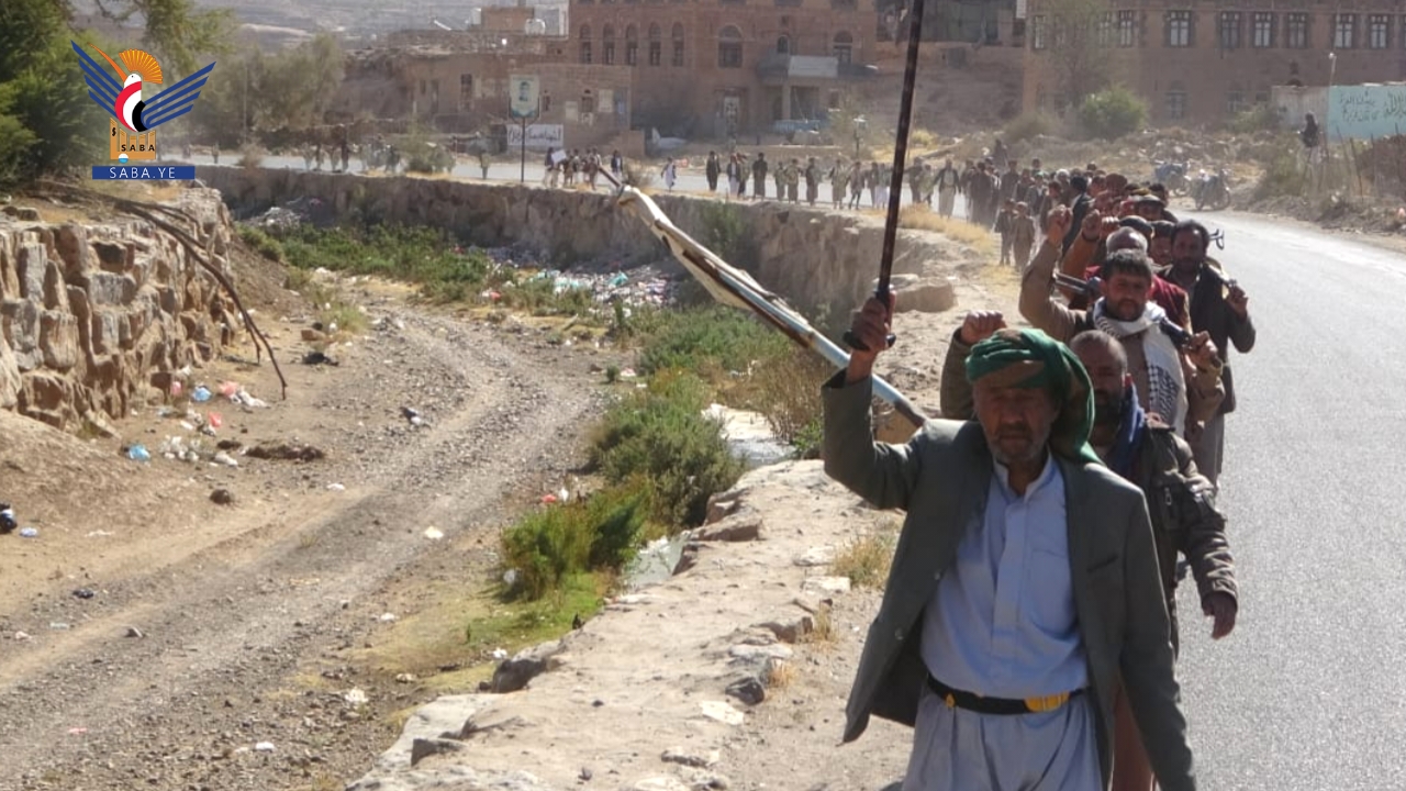 نظمّت التعبئة العامة بعزلة عيال الأبناء، بمديرية بني حشيش، محافظة صنعاء، اليوم مسيرًا راجلًا لخريجي دورات التعبئة "طوفان الأقصى"، تدشينًا للعام الجديد، واستعدادًا للجولة القادمة.
