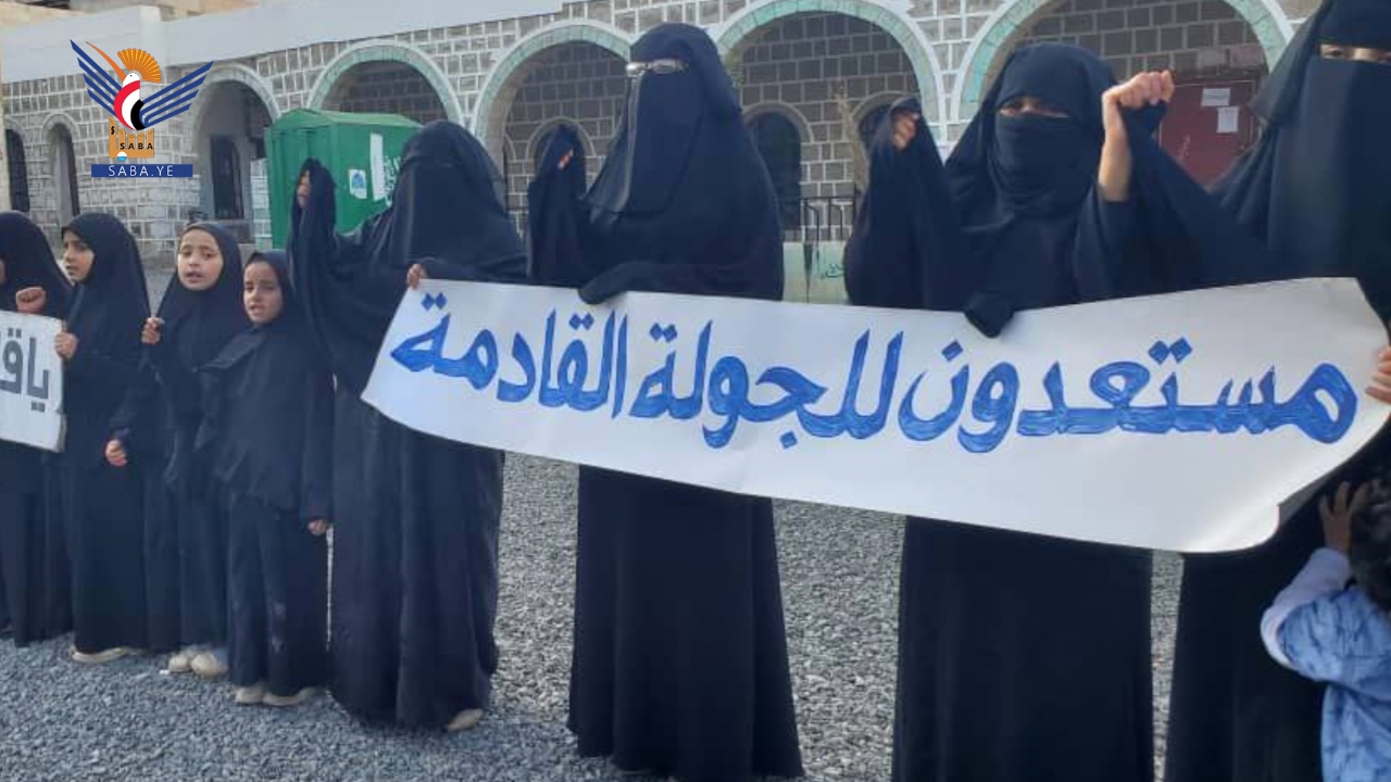 نظّمت الهيئة النسائية في مديرية شبام كوكبان بمحافظة المحويت، اليوم، وقفة تضامنية مع الشعب الفلسطيني.