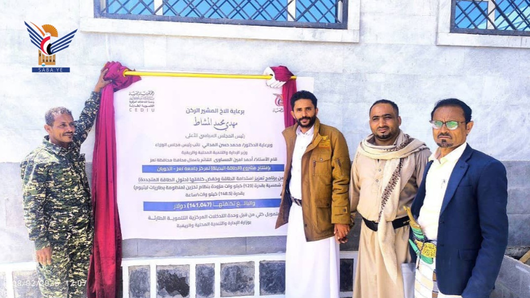المساوى يفتتح مشروع الطاقة البديلة لمركز جامعة تعز - الحوبان