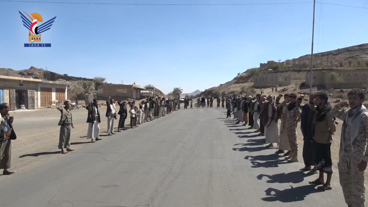 كما نظمت التعبئة العامة بمديرية جحانة، مسيراً راجلاً ووقفة مسلحة لسريتين من خريجي دورات طوفان الأقصى في بلاد أسناف، تنديدًا بما يرتكبه العدو الصهيوني من خروقات لوقف إطلاق النار في غزة.