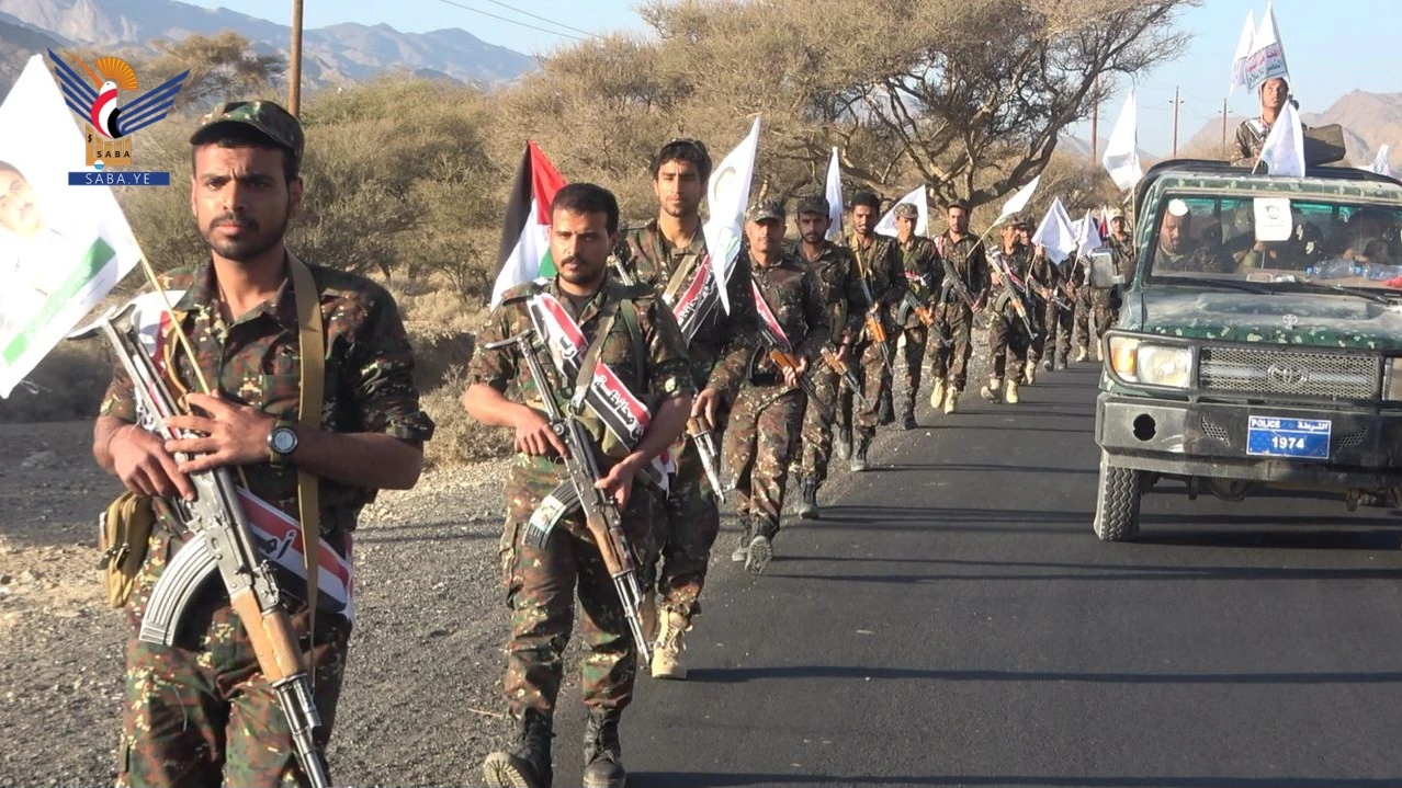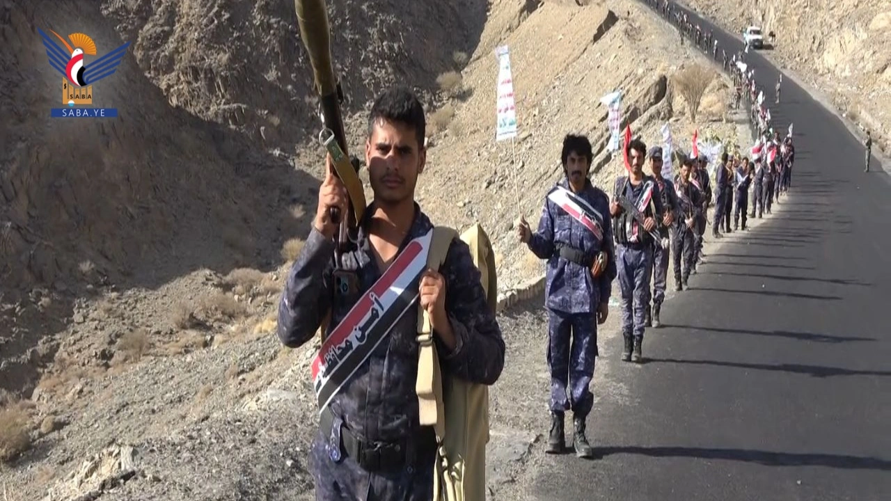 مسير أمني في مأرب تأكيداً على الجهوزية والاستعداد لمواجهة أي تصعيد للعدو