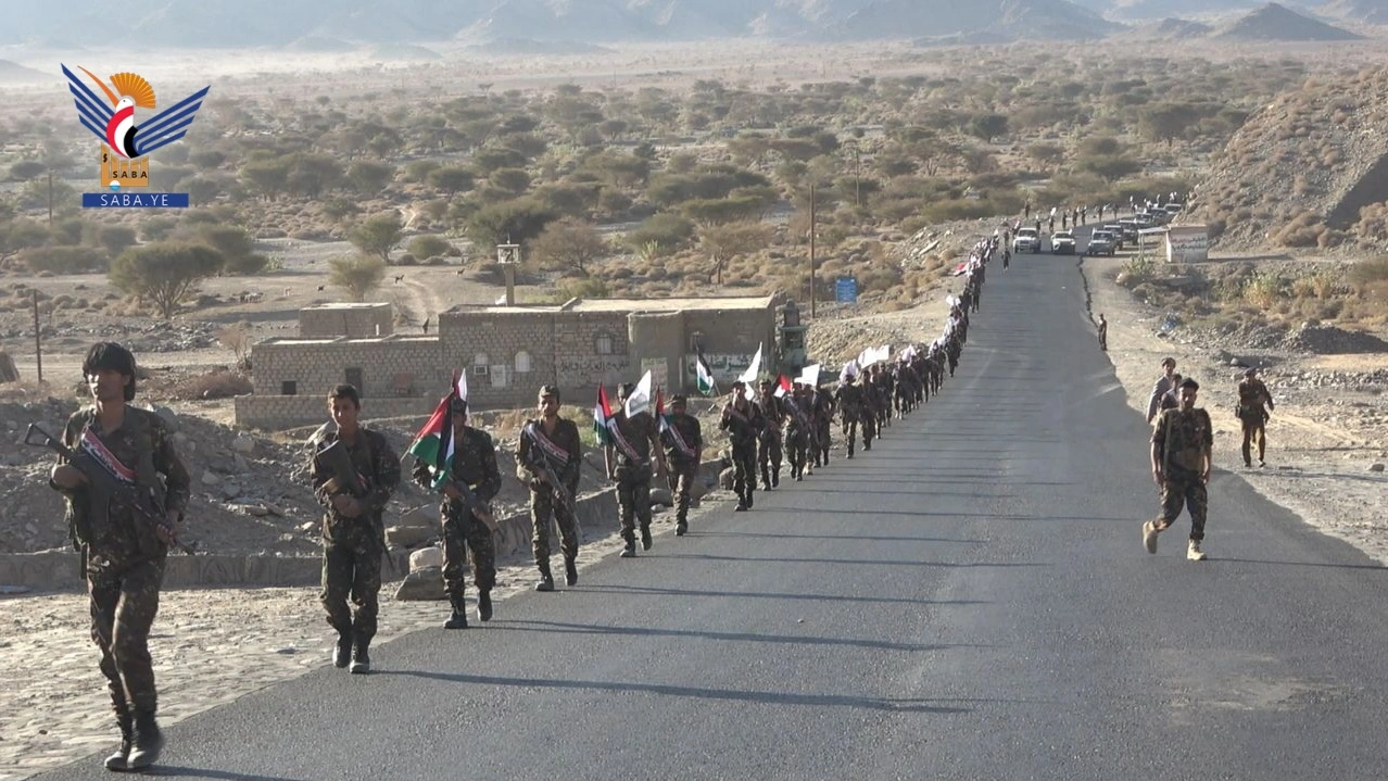 نفذ منتسبو أمن محافظة مأرب، اليوم مسيراً عسكرياً راجلاً، تأكيداً على الجهوزية والاستعداد لمواجهة أي تصعيد للعدو الأمريكي، الصهيوني.