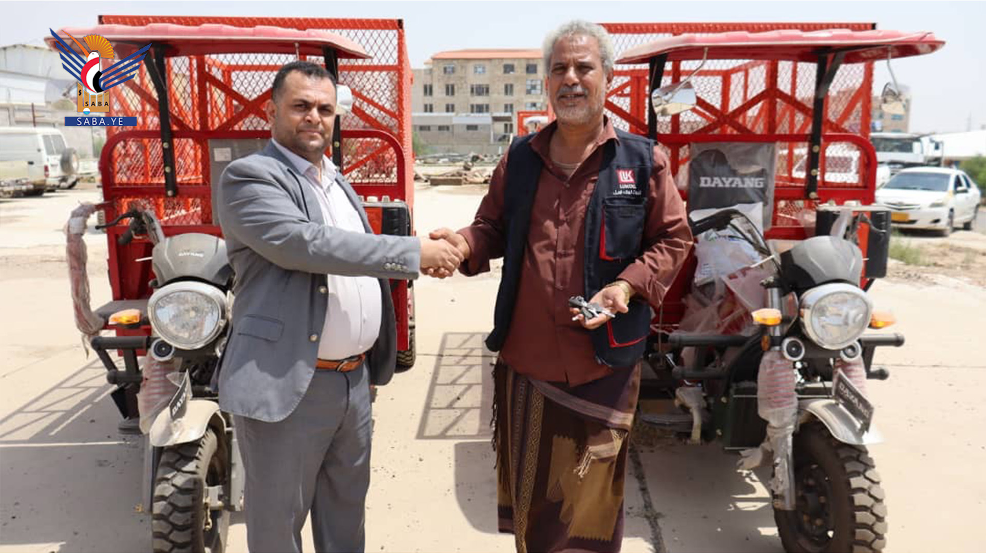 كما شملت آليتي نظافة (دراجات نارية ذات صناديق) لمدينة إب، ودراجتين لمديرية القاعدة، ودراجتين لمديرية حزم العدين، وأربع لمدينة معبر في محافظة ذمار بالإضافة إلى خمس دراجات لمديرية جبل الشرق.