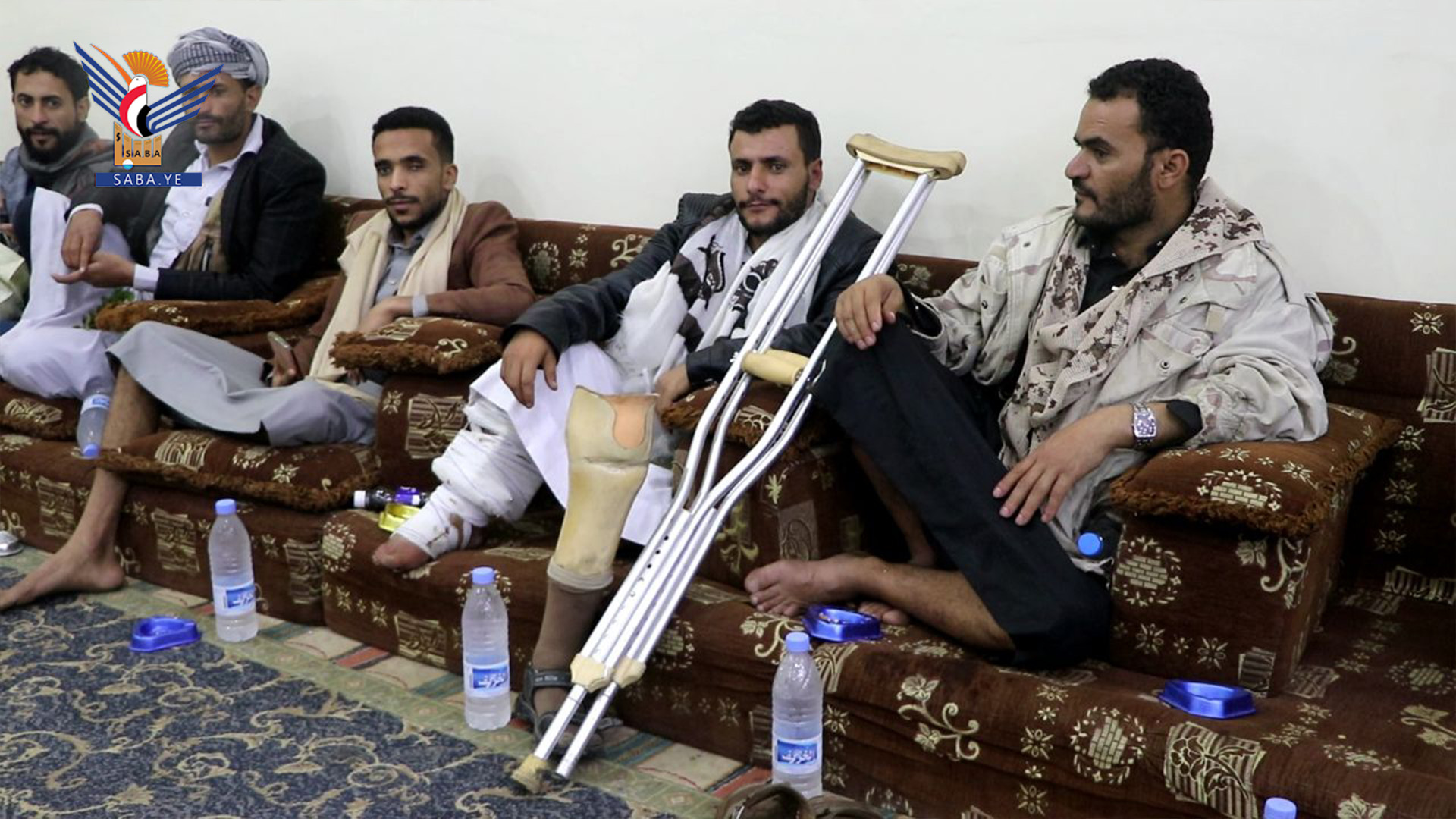 وقال " نحن لا نرى فيكم جراحاً أو إعاقة، بل نرى فيكم مشاريع شهادة، وشهوداً أحياء على بشاعة العدوان وعظمة الصمود اليمني وقد كانت دماؤكم الزكية وتضحياتكم العظيمة الصخرة التي تحطمت عليها كل المؤامرات التي حيكت ضد وطننا الغالي".
