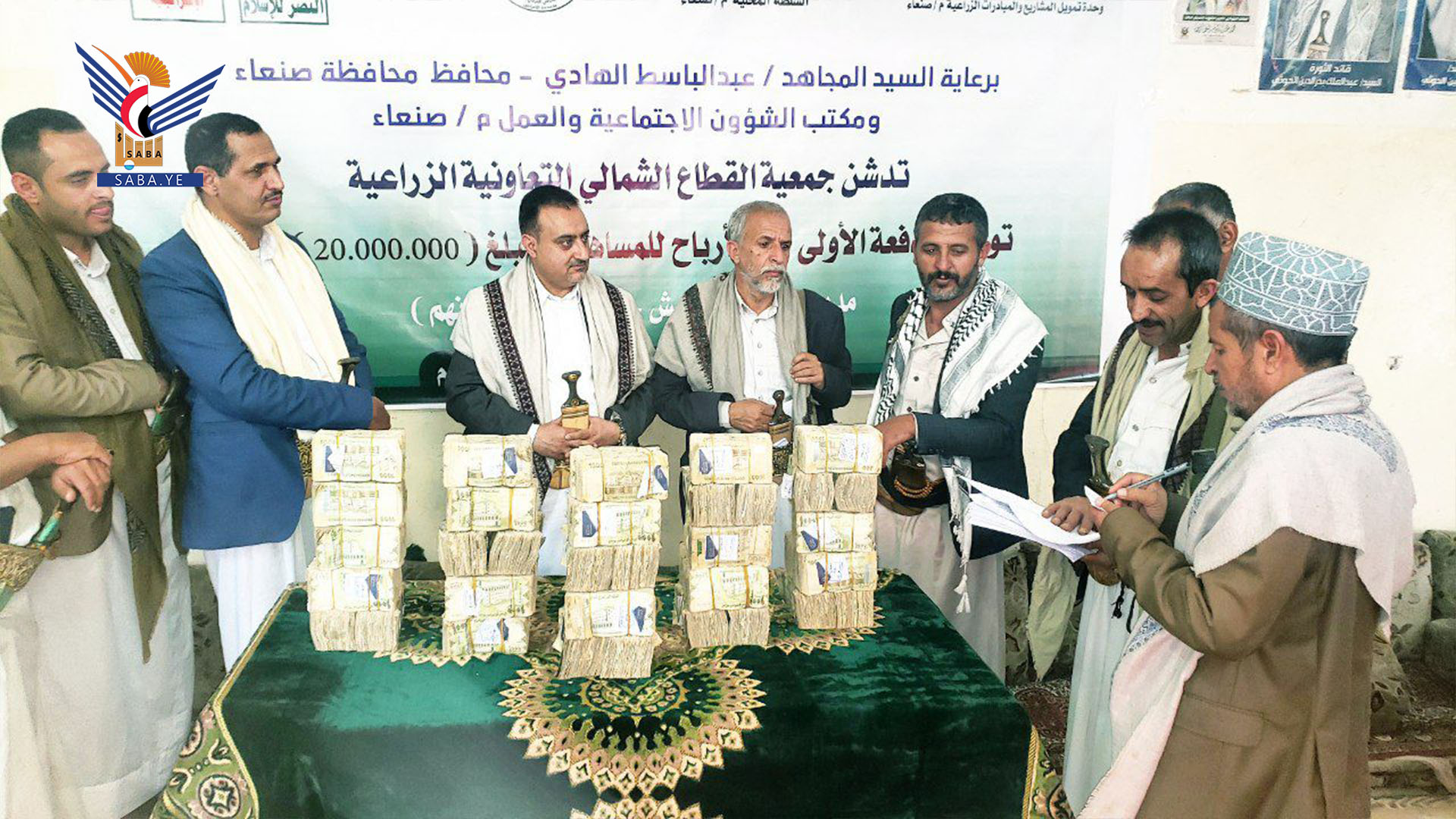 دشنت جمعية القطاع الشمالي التعاونية الزراعية بمحافظة صنعاء اليوم، توزيع الدفعة الأولى من الأرباح للمساهمين فيها البالغ عددهم ألفين و889، موزعة على 10 آلاف و157 سهما.