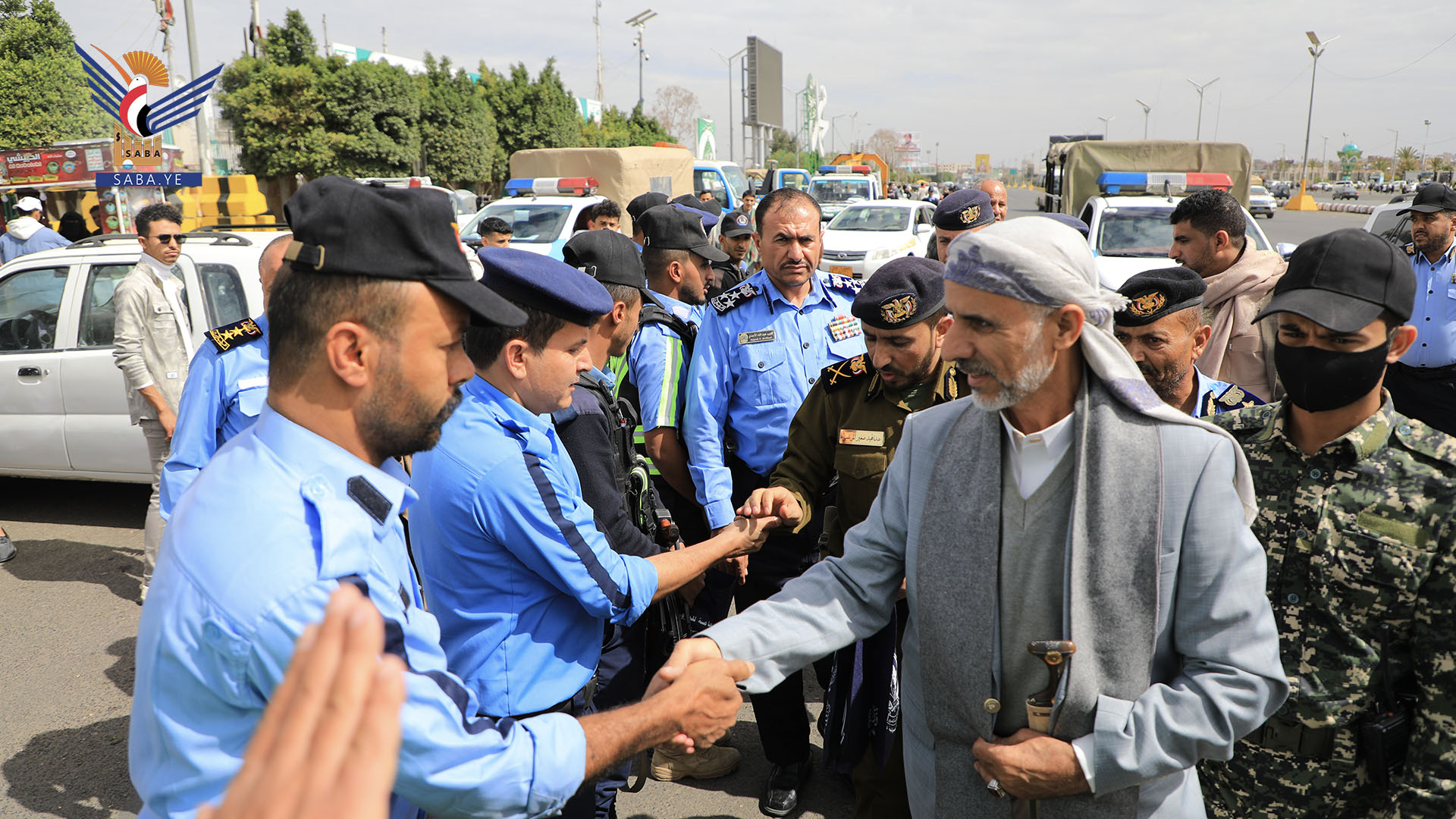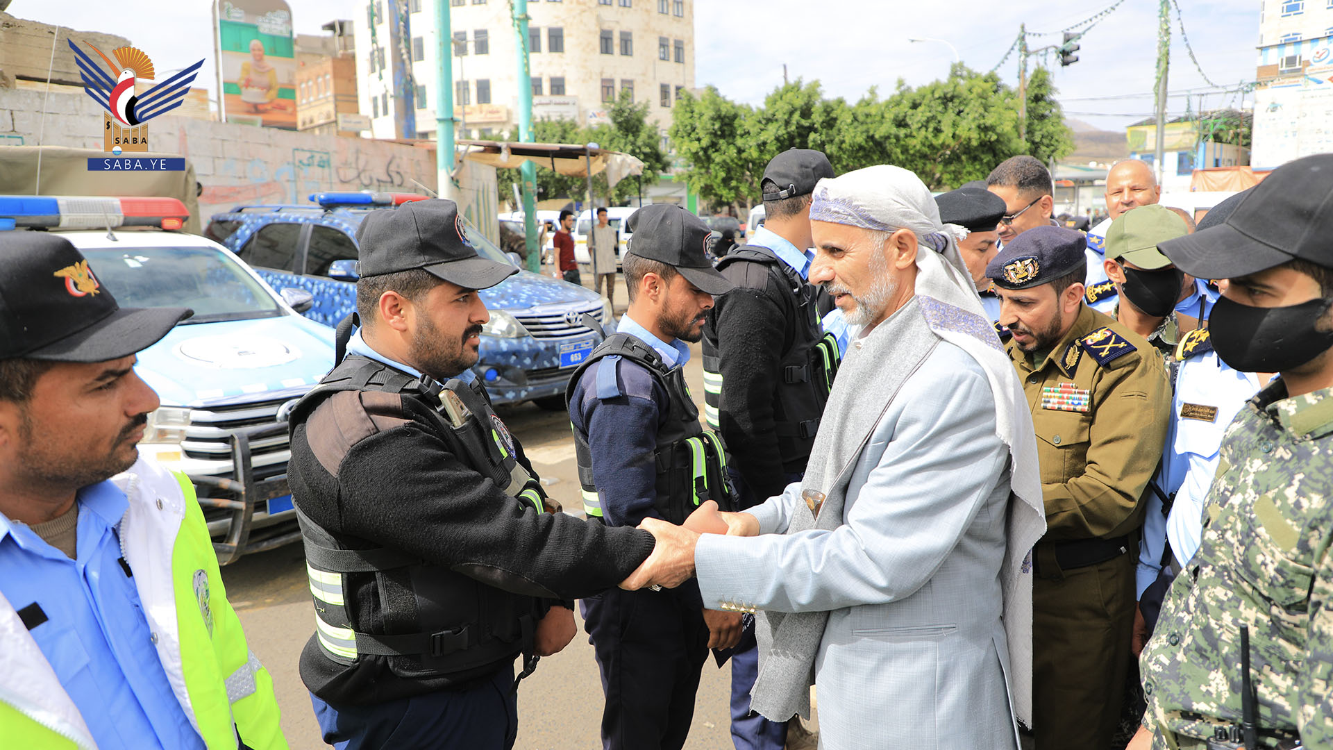 كرًم القائم بأعمال رئيس مجلس الوزراء العلامة محمد مفتاح، خلال نزول ميداني اليوم، لعدد من شوارع أمانة العاصمة صنعاء ومعه نائب وزير الداخلية اللواء عبدالمجيد المرتضى عددًا من منتسبي المرور، والنجدة والدفاع المدني المرابطين في خدمة المجتمع خلال إجازة العيد.