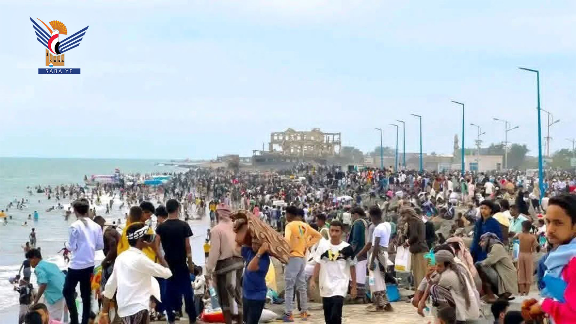 وتستمر قوافل الزوار بالتدفق من مختلف المحافظات وكافة مديريات محافظة الحديدة في مشهد يعكس عمق الروابط الاجتماعية والتلاحم الشعبي، حيث تحولت الشوارع المؤدية للساحل إلى شرايين نابضة بالحركة والحياة على مدار الساعة.