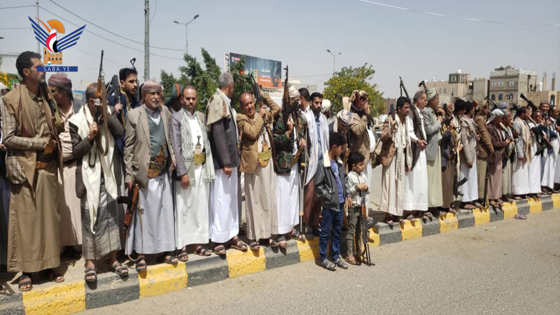 أعلن أبناء مديرية شعوب في أمانة العاصمة، في وقفة مسلحة حاشدة، تأييدهم لعمليات القوات المسلحة، ودعمهم واسنادهم لمحور الجهاد والمقاومة في مواجهة أعداء الأمة.