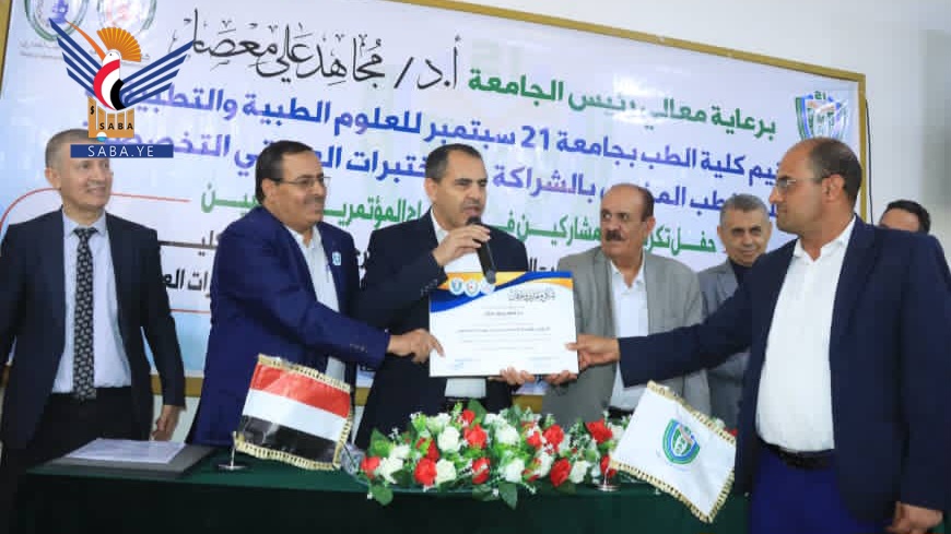 نظّمت جامعة 21 سبتمبر للعلوم الطبية والتطبيقية اليوم حفلاً تكريمياً لأعضاء اللجان المشاركة في المؤتمر العلمي الـ11 الخاص بمناقشة بحوث تخرج الدفعة الرابعة بكلية الطب، والمؤتمر العلمي الـ12 للجامعة، إلى جانب المؤتمر الأول لكلية الطب المخبري.