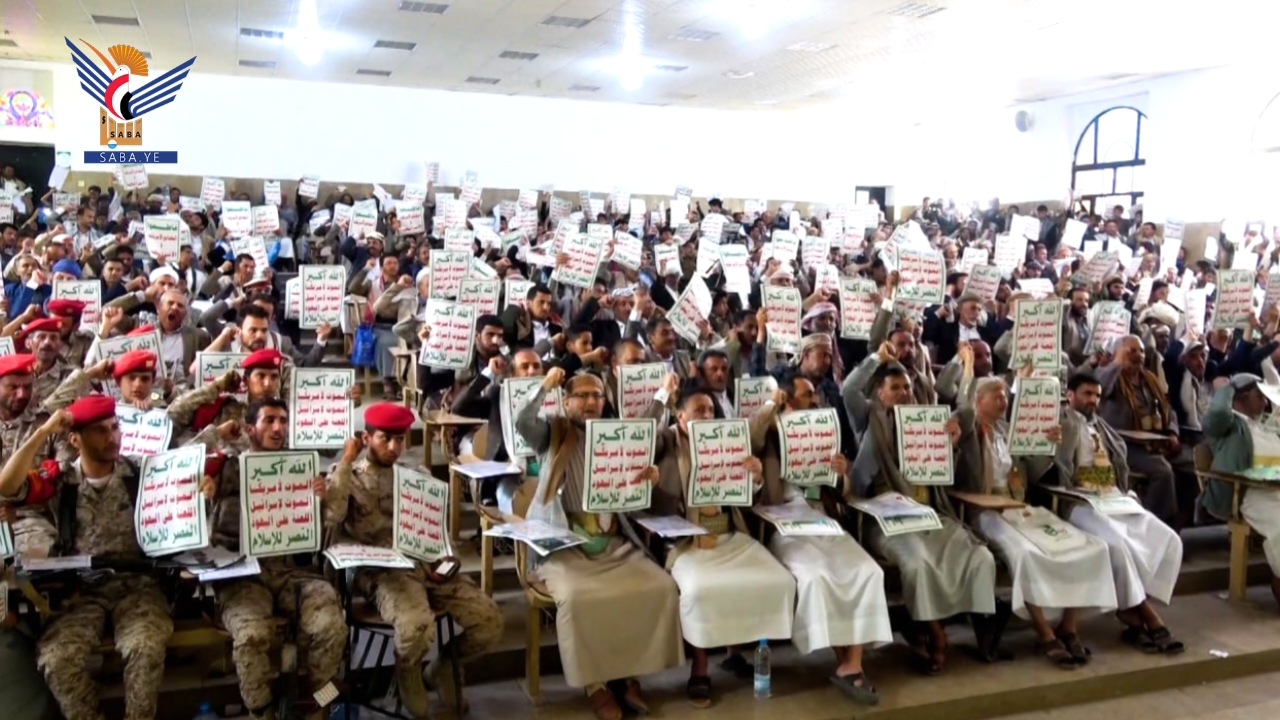 نظمت السلطة المحلية والتعبئة بمحافظة عمران اليوم، فعالية خطابية بالذكرى السنوية للصرخة في وجه المستكبرين تحت شعار "الصرخة سلاح وموقف".