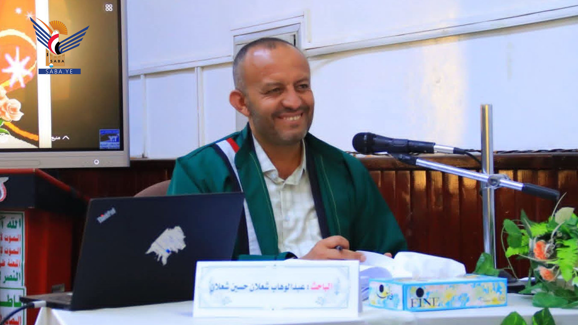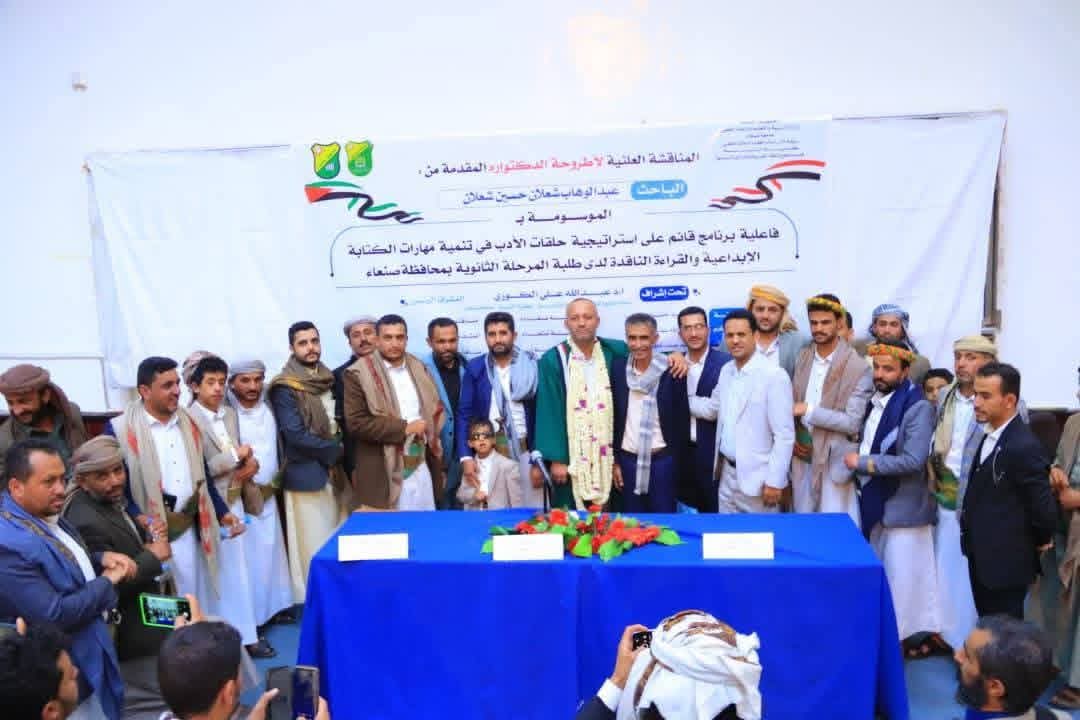 حضر مناقشة الأطروحة، اليوم الخميس، في كلية التربية بجامعة صنعاء، عدد من الأساتذة والأكاديميين والباحثين، وزملاء وأقارب الباحث شعلان.
