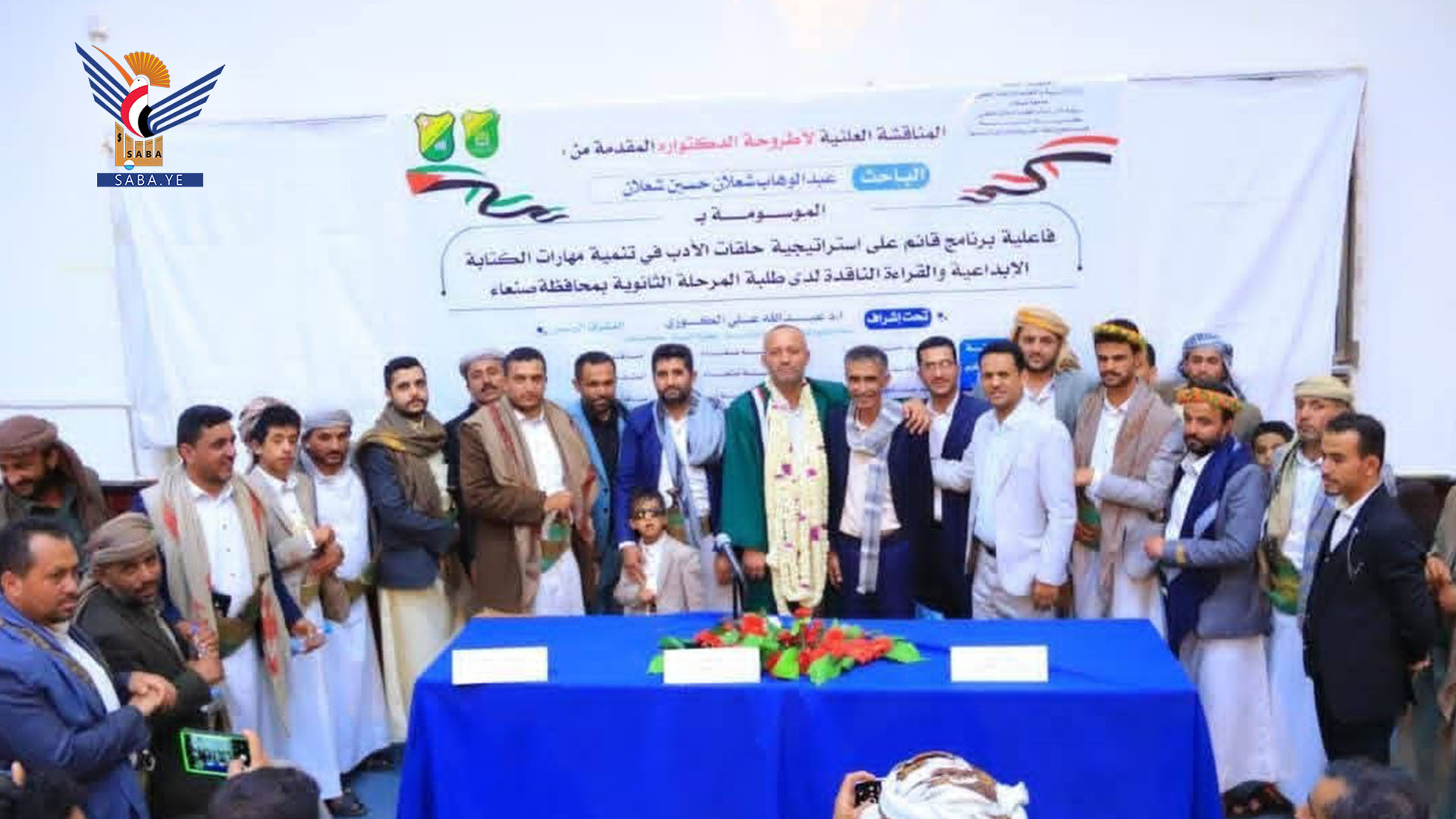 حصل الباحث عبدالوهاب شعلان حسين شعلان على درجة الدكتوراة في اللغة العربية من جامعة صنعاء، عن رسالته الموسومة بـ: "فاعلية برنامج قائم على إستراتيجية حلقات الأدب في تنمية مهارات الكتابة الإبداعية والقراءة الناقدة لدى طلبة المرحلة الثانوية بمحافظة صنعاء".