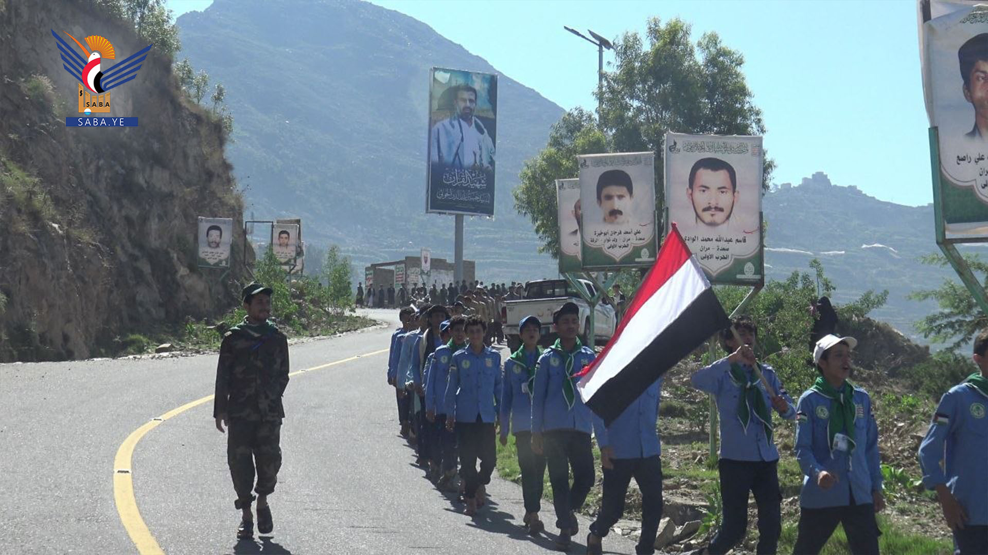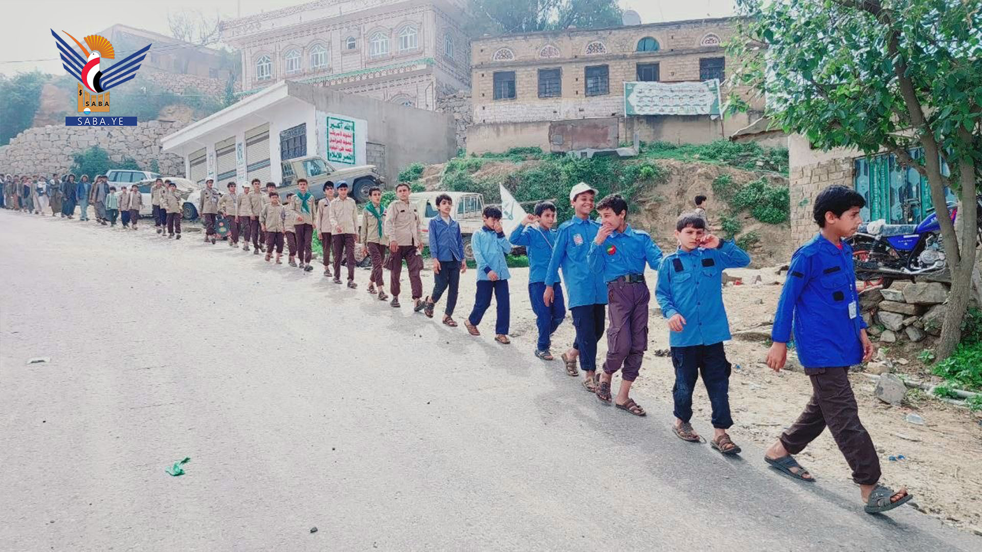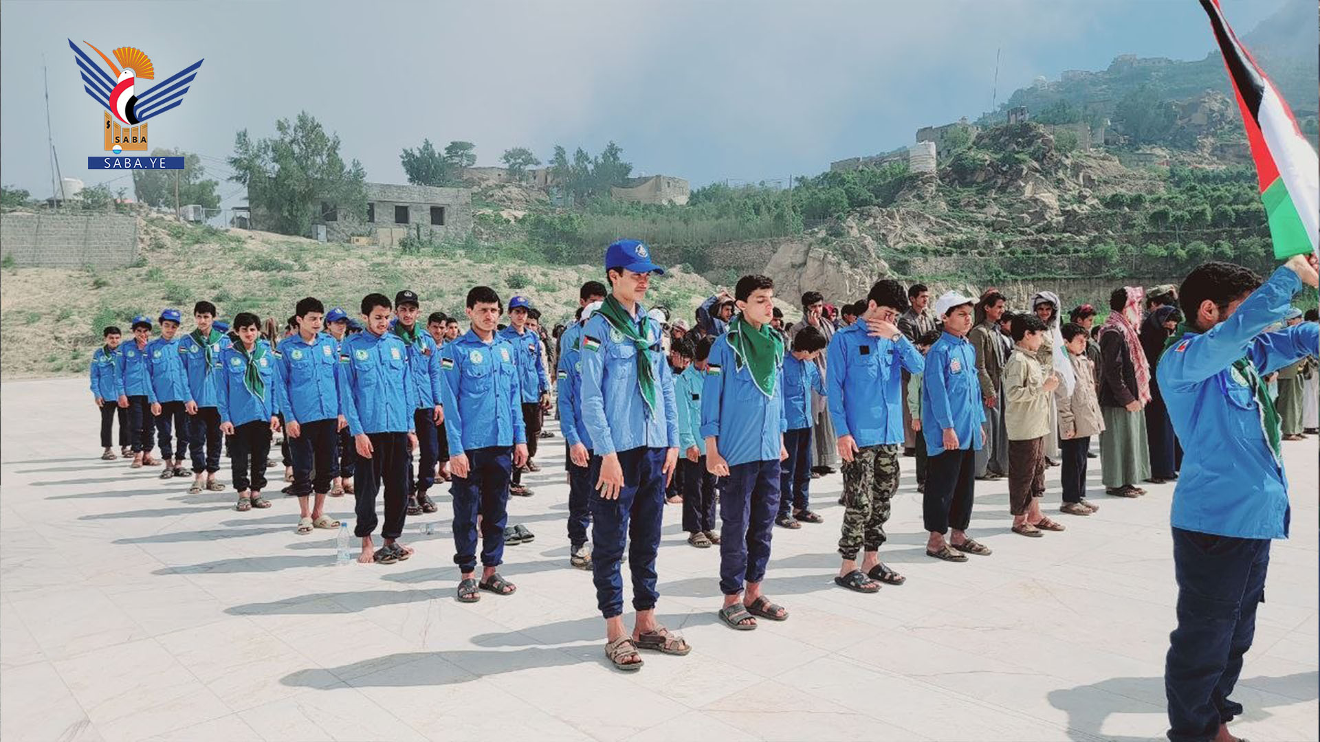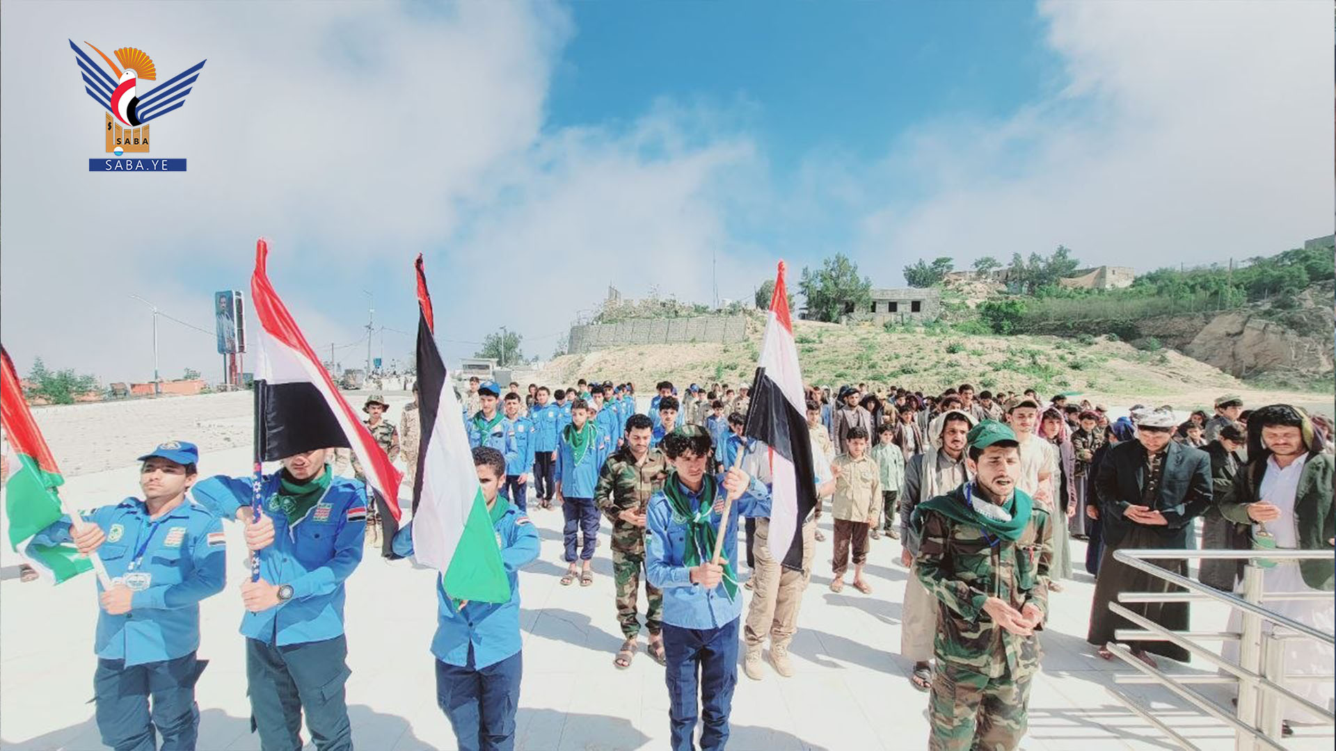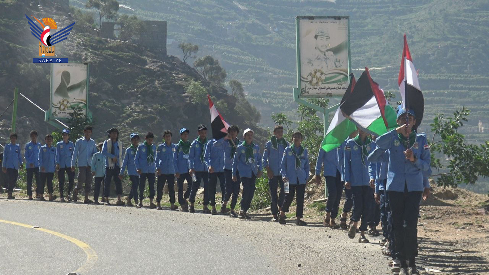ورفع الطلاب خلال المسير الكشفي، العلمين اليمني والفلسطيني، تعبيراً عن التمسك بالموقف المبدئي في نصرة فلسطين، ومدى ارتباط الجيل الناشئ بالقضية المركزية للأمة.